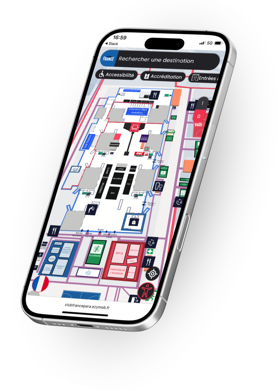 Répondant aux besoins du client, la solution de plan interactif et inclusif a été déployée sur le site à l'occasion des Jeux Paralympiques 2024. Ce plan comprend :